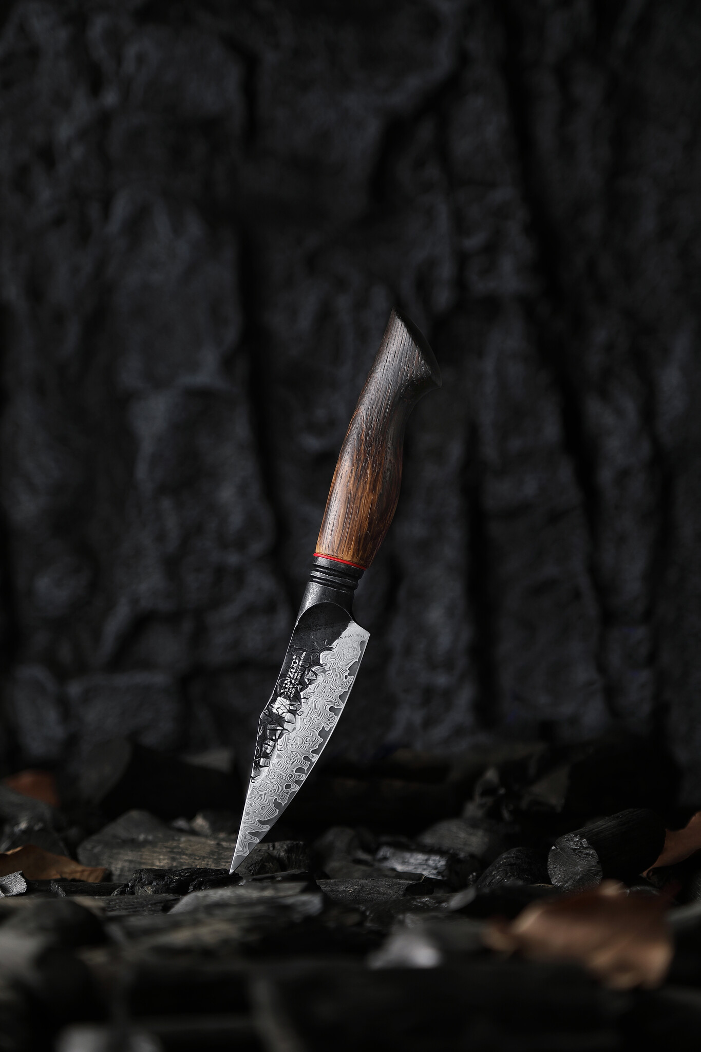 Het schilmes uit de XinZuo X06 Mo Series is een compact en precies keukenmes, ideaal voor kleine, verfijnde snijtaken. Dankzij het korte lemmet en lichte gewicht is dit mes perfect voor het schillen van fruit en groenten, het verwijderen van pitjes of het nauwkeurig snijden van fijne ingrediënten. Het lemmet bestaat uit 67 lagen Damaststaal met een kern van 10Cr15CoMoV-staal en is behandeld met een geavanceerd vacuüm- en diepvriesproces voor een hardheid van 58-62 HRC. De snede is met de hand geslepen tot een hoek van 15 graden per zijde. Het handvat van gebrand Noord-Amerikaans wit eikenhout met rode G10 tussenlaag zorgt voor een comfortabele, stevige grip. Dankzij de zwarte titanium stonewash-afwerking en de retro-stijl heeft het mes een robuuste, stijlvolle uitstraling.